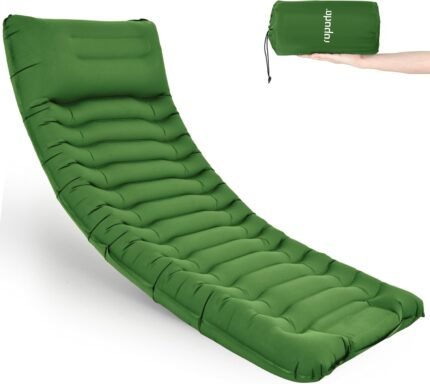 ropoda Upgraded Extra Thickness 6” Inflatable Sleeping Pad with Pillow, Built-in Foot Pump, 77”*27” Camping Pad with Carry Bag, Ultralight & Compact Camping Mat Pad for Hiking, Green