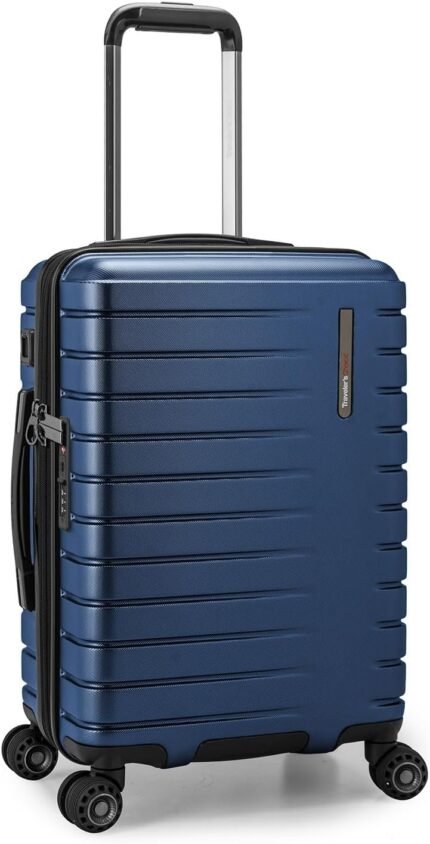 Traveler’s Choice Archer Polycarbonate Hardside Spinner Luggage Set, Blue, Carry-On 21-Inch, Tie Down Straps