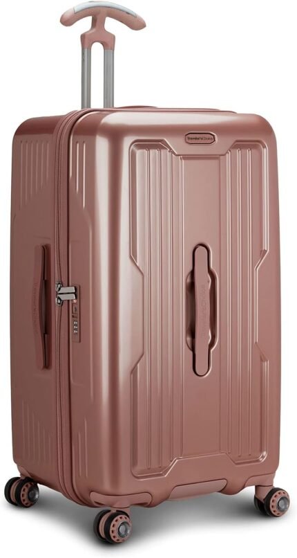 Traveler’s Choice Ultimax II 26″ Medium Trunk Spinner Luggage, Tie Down Straps, Pink Rose, Checked Inch