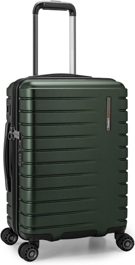 Traveler’s Choice Archer Polycarbonate Hardside Spinner Luggage Set, Tie Down Straps, Green, Carry-On 21-Inch