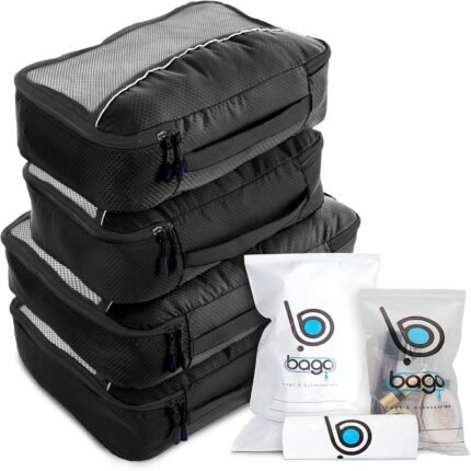 bago 7 Pcs Packing Cubes for Travel – 4 Travel Packing Cubes for Suitcases with 3 ZipLock Bags – Luggage Organizer Bags to Get Maximum Storage, Save Time & Effort to Pack (Black)