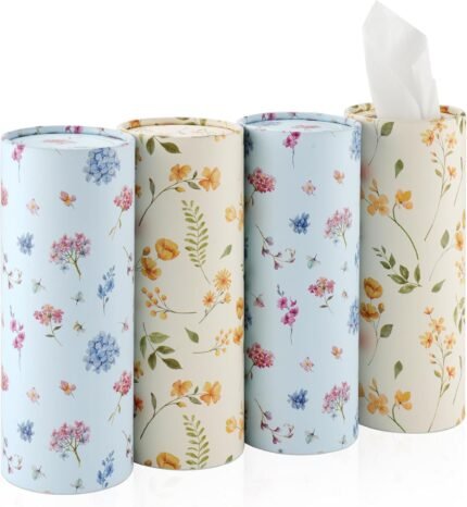 JUSTTOP Car Tissue Holder,Car Travel Kleenex Cup Holder with 4 Pack Facial Tissues,Convenient Tissue Bag,Car Accessories Interior for Women and Man 4 Canisters