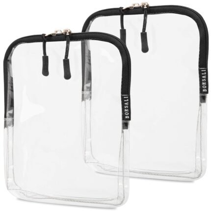 BORSALI TSA Quart Size Bag Approved for Carry On Travel – One (1) Quart Clear Toiletries, Cosmetic and 3-1-1 Liquids Toiletry Bag – 2 Pack