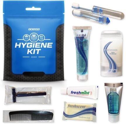 Travel Toiletry Kit, Hygiene Kit with Shaving Supplies for Travel, Business & Charity with Reusable Toothbrush, Bath Soap & Other Essential Toiletries, 1-Pack