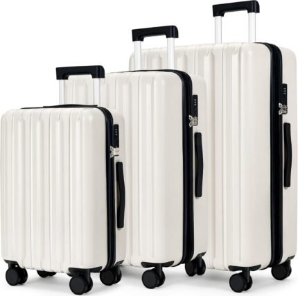 SHOWKOO Luggage Sets 3 Piece 100% PC Ultra Tough Hardside Expandable Suitcases Sets with TSA Lock Double Spinner Wheels (20in/24in/28in, White
