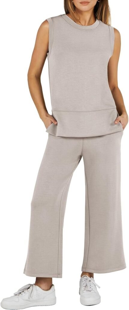 ANRABESS Women’s 2 Piece Sets Summer Outfits Sleeveless Wide Leg Tracksuits Casual Sweat Sets Lounge Sweatsuits