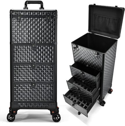 Stagiant Rolling Makeup Train Case Large Storage Cosmetic Trolley 4 in 1 Large Capacity Trolley Makeup Travel Case with Key Swivel Wheels Salon Barber Case Traveling Cart Trunk – Black