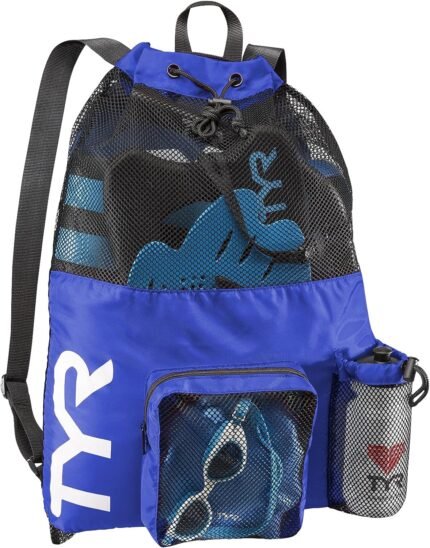 TYR Big Mesh Mummy Backpack for Swim, Gym and Workout Gear, Royal Blue, 40-Liter Capacity