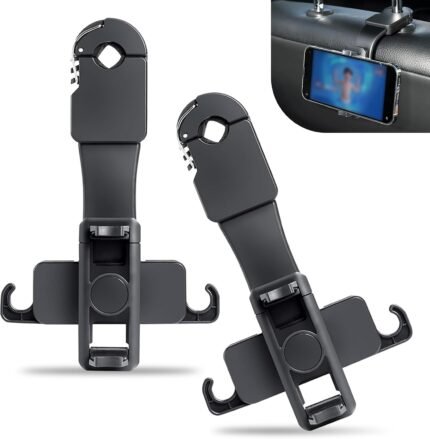 Price: (as of – Details) DYEKNEE 2 PCS Car Seat Headrest Snap-on Storage Holder, Multi-function 360 Degree Rotating Phone Holder,