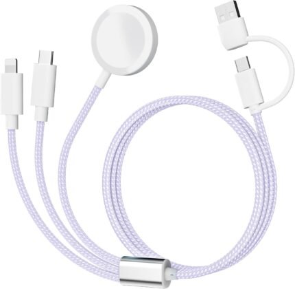 𝐔𝐩𝐠𝐫𝐚𝐝𝐞𝐝 𝐑𝐚𝐩𝐢𝐝 𝐅𝐚𝐬𝐭 Charging USB C Watch Phone Charger 3 in 2 Cable, Compatible with Apple Watch Ultra SE Series 1-9, Universal Travel Multi Devices All in One Cord, 4FT/1.2M-Purple