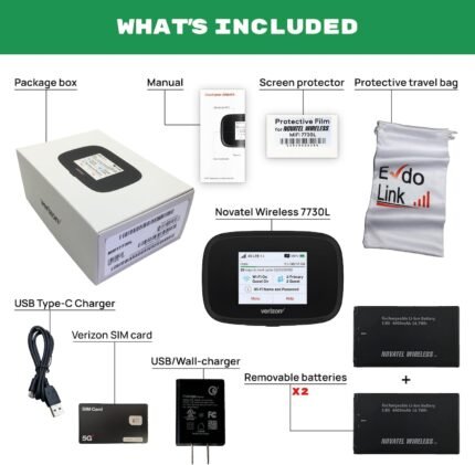 Verizon Wireless Jetpack Inseego MiFi 7730L | Unlocked Mobile Hotspot for Travel | 4G Mobile Portable WiFi | LTE Cat9 Up to 450 Mbps | Usage Up to 12 Hours | EVDO-LINK Bundle – Verizon Sim Card