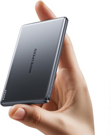 MOVE SPEED 0.3” Ultra Slim MagSafe Portable Charger, 2025 Upgrade 5,000mAh Battery Pack, Magnetic Power Bank with USB C Cable for iPhone 16/15/14/13/12, Glacier Gray