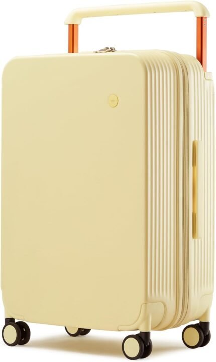 mixi Checked Luggage Upgrade Wide Handle PC Hard Shell Rolling Travel Medium Suitcases with Spinner Wheels & TSA Lock, 24 Inch Lark Yellow