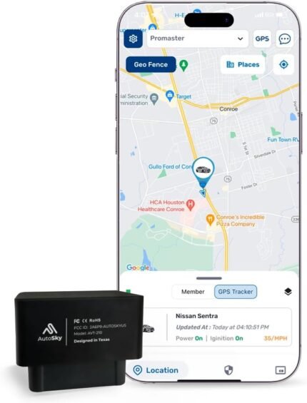 AutoSky GPS Tracker for Vehicles, OBDII, 4G LTE, Model – AVT-210, Vehicle Location, Trip History, Driving Alerts, GeoFence, USA-Developed, Family or Fleets