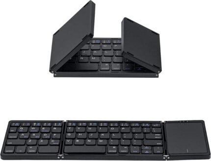 Mcbazel Foldable Wireless Keyboard with Trackpad, BT 5.1 Rechargeable Multi-Device Mini Keyboard for iOS/Android/Windows, Upgraded Version for Tablet Laptop and PC – Black