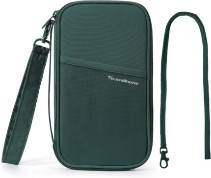 Travel Passport Holder, Large Family Passport Walle for Men Women RFID Passport Cover Lightweight Portable Document Organizer with Wrist Strap & Neck Lanyard (Green)