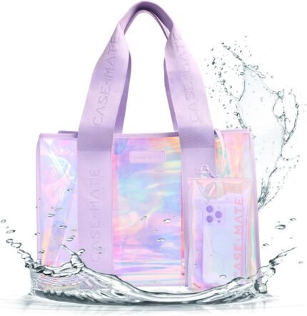 Case-Mate Official Soap Bubble Beach Tote – Iridescent Beach Bag with Phone Pouch for Women – Waterproof, Foldable & Washable – Tote Bag for Beach, Pool, Travel and Vacation – Large