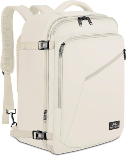 MATEIN Large Travel Backpack Women, Lightweight Carry on Backpack & Hidden Shoulder Straps, Waterproof Anti-Theft Daypack for Flight, Expandable Hiking Weekend Daypack, Travelling Gifts, Beige