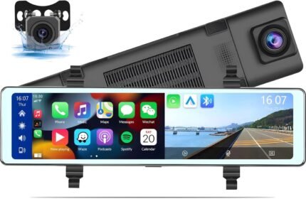 Mirror Dash Cam with Wireless Apple Carplay&Android Auto,11.26″ Voice Control Rear View Mirror 1080P Front and Rear View Dual Cameras,FM Transmitter,Night Vision,Parking Assistance, WDR,Loop Recording