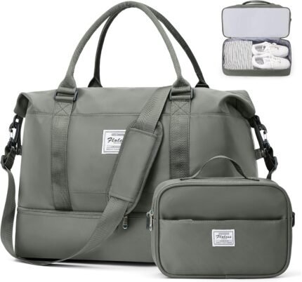 Weekender Bags for Women, Travel Duffel Bags with Shoe Compartment,Personal Item Travel Bag for Airlines, Carry on Overnight Tote Bag for women with Toiletry Bag, Olive Green