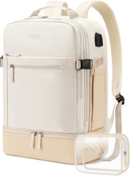 ZOMFELT Travel Backpack for Women, Flight Approved Carry on Backpack with Shoes Compartment & Wet Pocket, Water Resistant 17inch Laptop Bag with USB Charging Port for College Weekender Hiking Trip