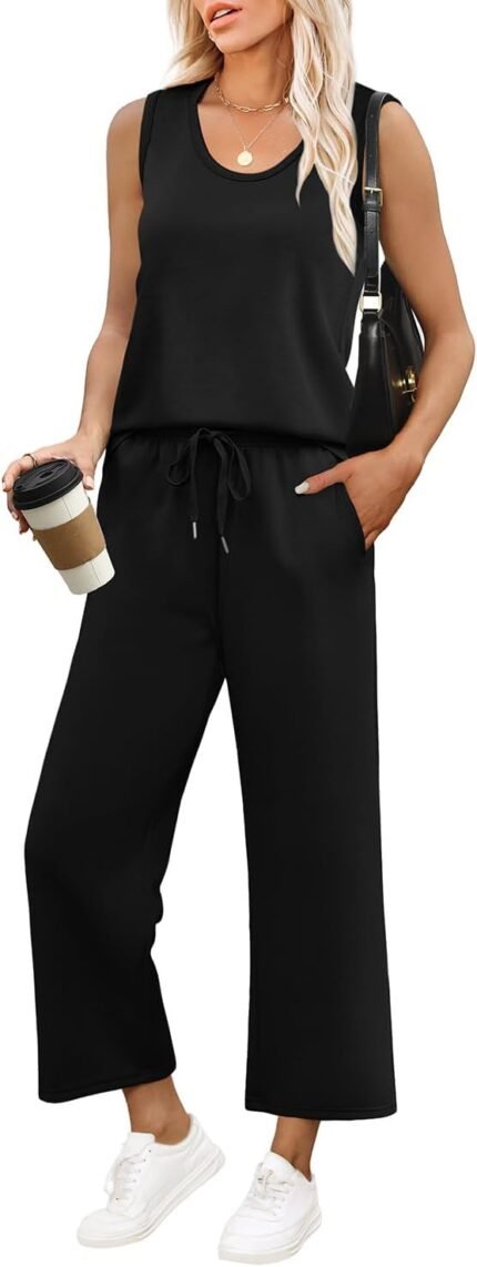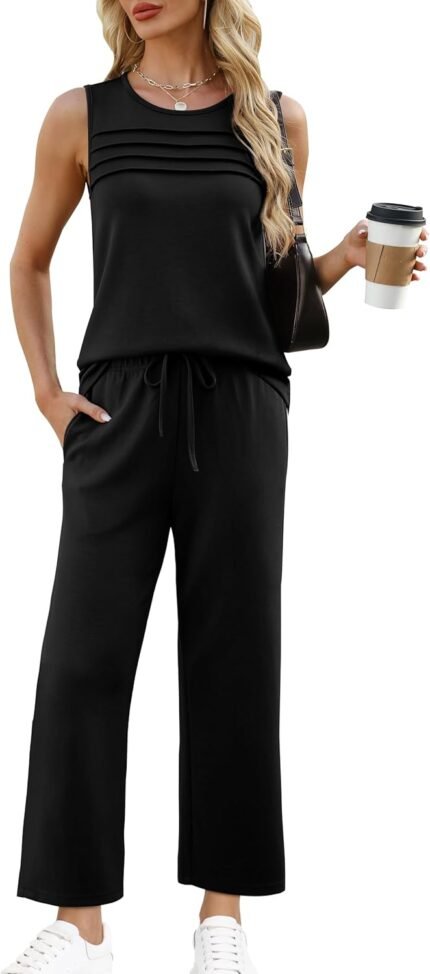 WIHOLL Two Piece Sets for Women Summer Outfits Matching Lounge Sets Wide Leg Crop Pants Vacation Travel