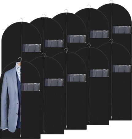 40″ Suit Cover Bags for Travel, 10 Pack Garment Bags for Hanging Clothes, Black PEVA Suit Bags for Men Dust-proof Closet Storage Bags for Suits Coats Jackets T-shirts with Clear Window