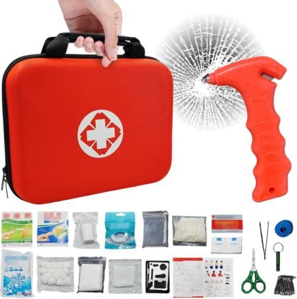51 Pcs Car First Aid Kit – Window Breaker Seatbelt Cutter, Red Small Emergency Kit Includes Gauze Band Aid Bandages Wipes Emergency Supplies, Waterproof Medical Kit for Car, Home, Keep Going, Travel