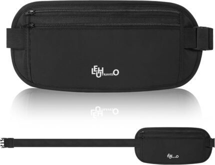 Money Belt – Anti-Theft Fanny Pack with Adjustable Elastic Strap, Nylon Hidden Money Pouch for Passport, Cards, Cash, Travel Money Belt Under Clothes for Men Women