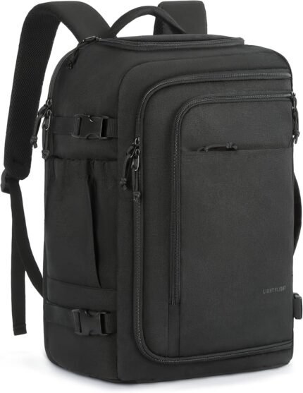 LIGHT FLIGHT Travel Backpack Carry On Flight Approved TSA Friendly Backpack Water-resistant Lightweight Business Large Weekender Bag Casual Daypack 17.3″ Laptop Backpack for Men Women,Black