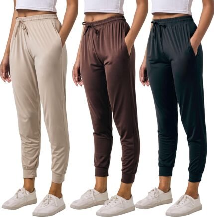3 Pack: Women’s Ultra-Soft Silky Dry Fit Lounge Joggers Lightweight Dry-Fit Pants with Pockets (Available in Plus)