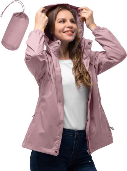 33,000ft Women’s Rain Jacket Waterproof Lightweight Packable Raincoat with Hood for Golf Hiking Travel Windbreaker