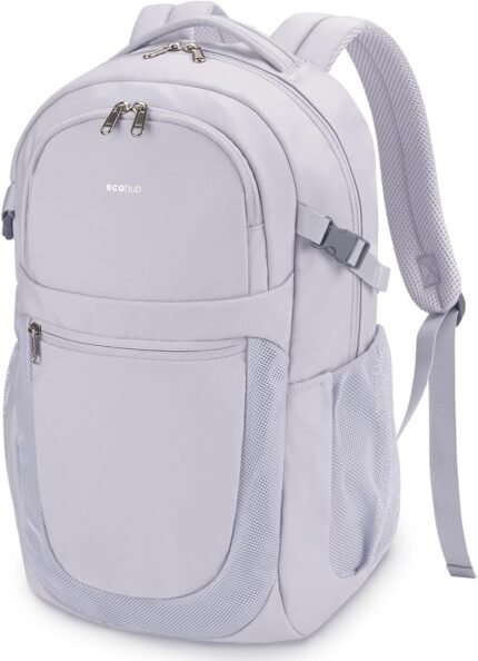 ECOHUB Travel Backpack for Women, 17.3 inch Suspended Laptop Backpack, Fashion Water-Resistant College Computer Bookbag, 28L Personal Item Bag with 12 Pockets for Causal, Work, Grey
