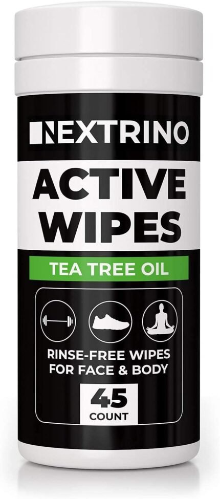Nextrino Body Wipes For Adults, Men & Women – Biodegradable Tea Tree Oil Cleansing Towelettes – Gym, Workout, Camping, Travel Shower Wipe (45 Wipes)