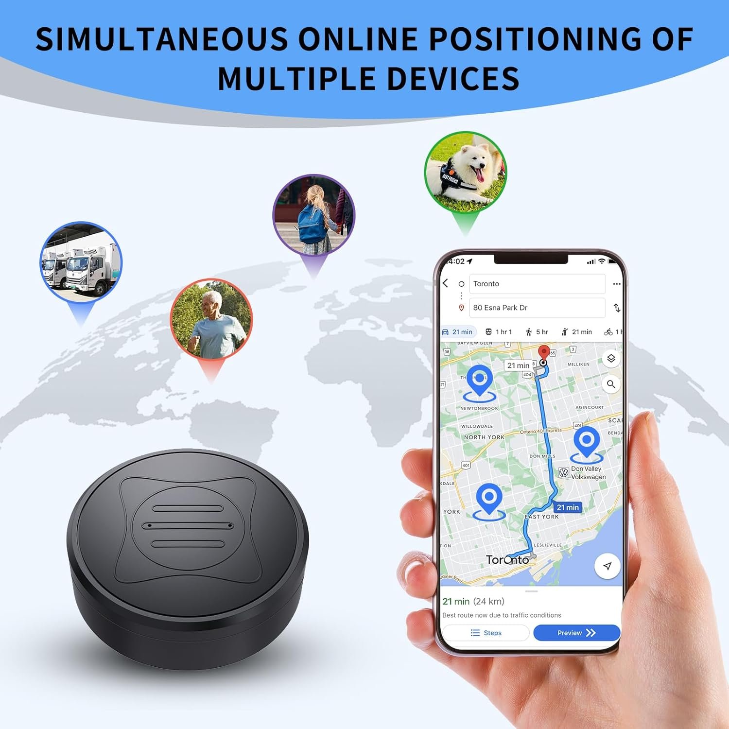 Global Coverage with Google Maps: Enhanced with Google Maps for precise location tracking, significantly reducing positional error, ensuring excellent tracking capabilities worldwide.