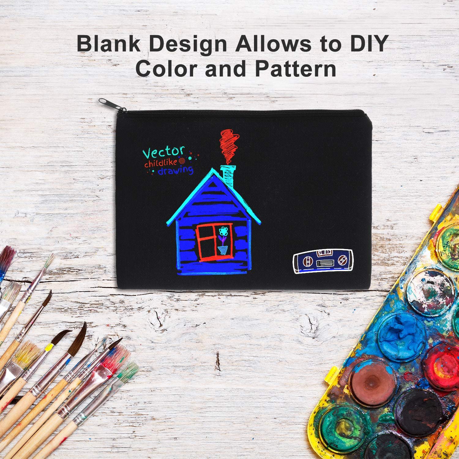 Blank design for DIY: our canvas cosmetic bags are blank on both sides, you can use your creativity to draw, write anything you like, just create your own personalized cosmetic bags with pins, embroidery patches, fabric markers, rubber stamps, paint and other DIY designs