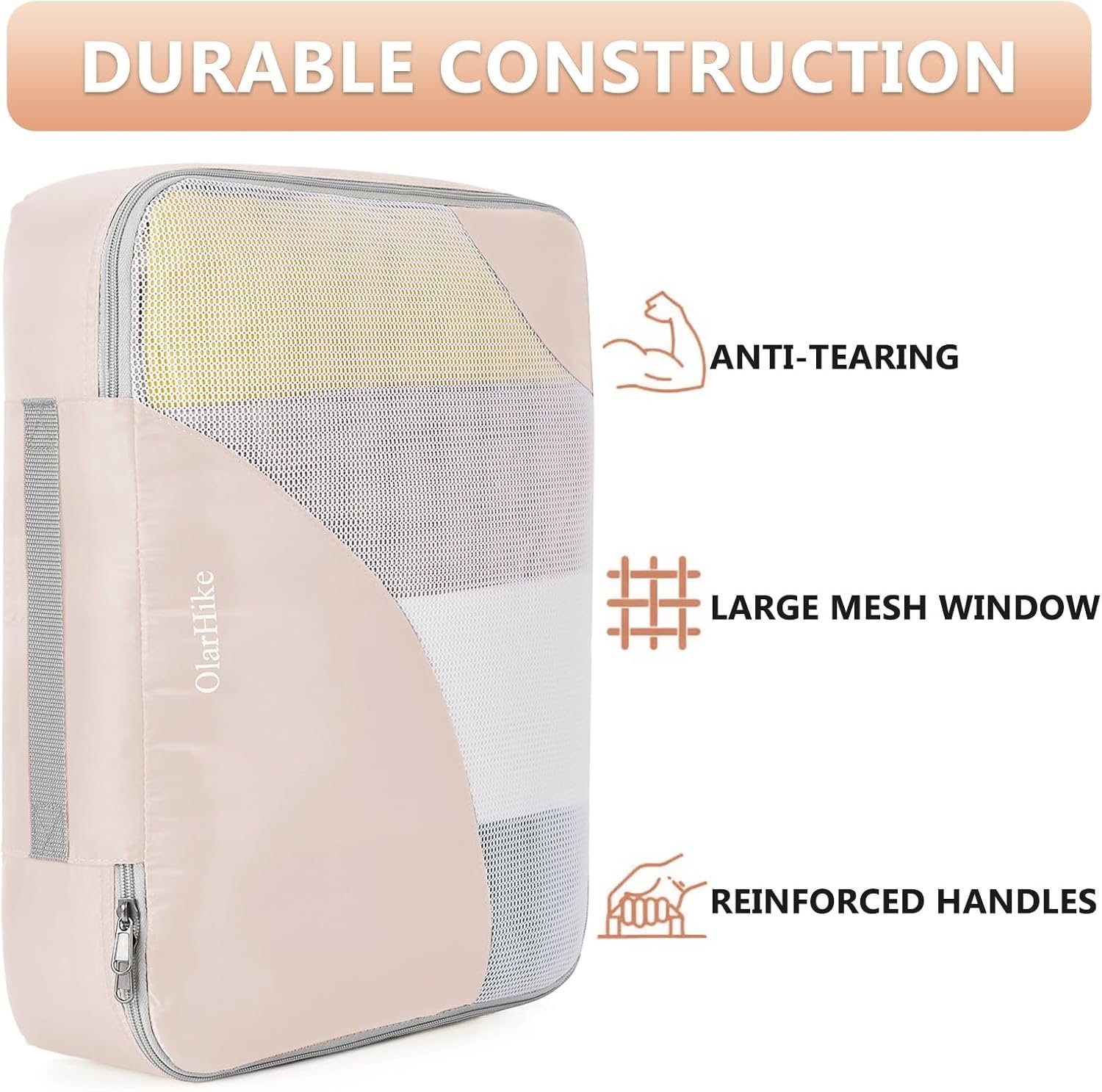 10 Set/8 Set-Packing Cubes for Travel, Sturdy Suitcase Organizer in 4 Size(Extra Large, Large, Medium, Small), OlarHike Luggage Cubes with Toiletry Bag, Essential Cruise Ship Gifts for Women