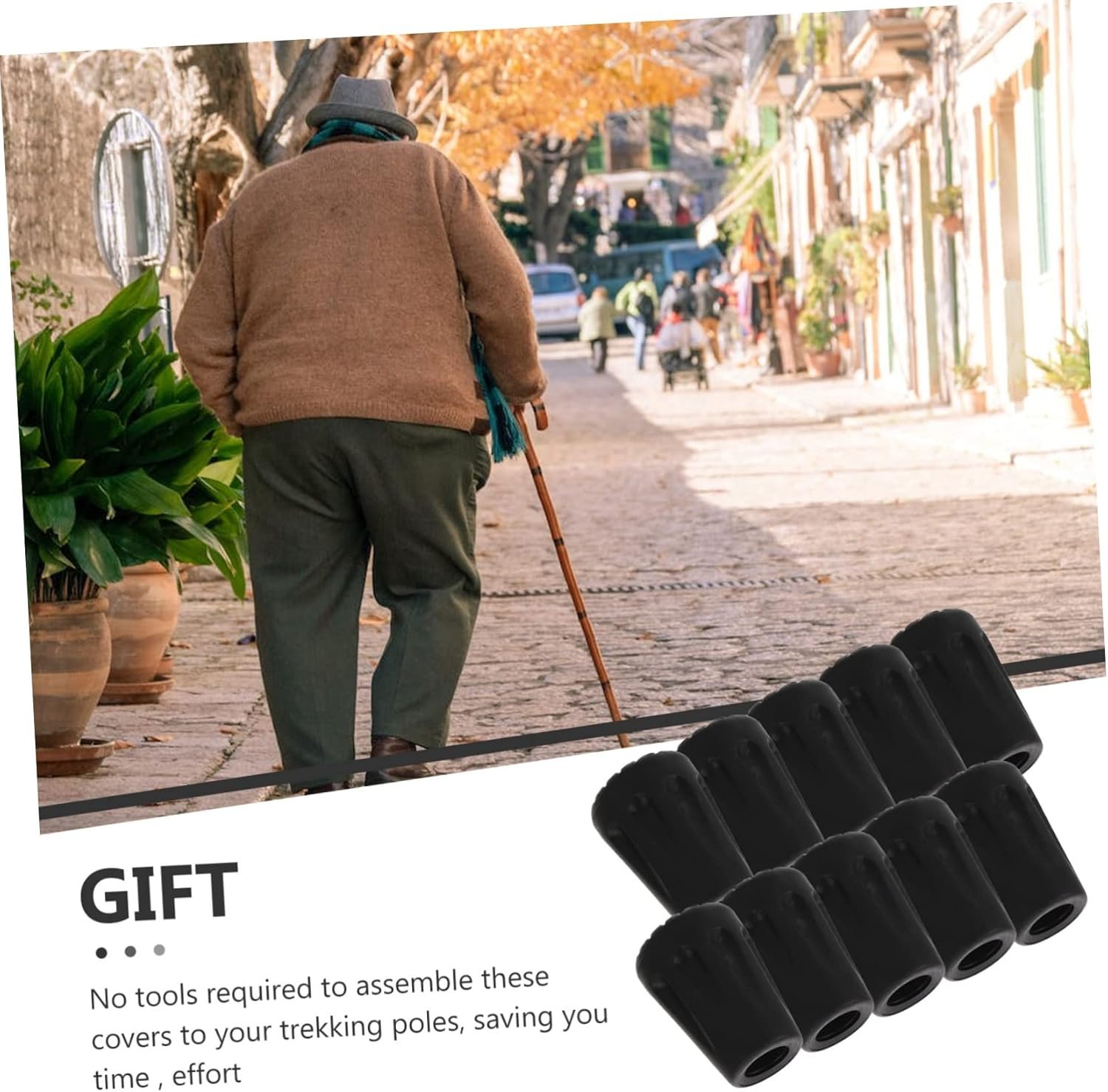 10pcs Anti-Slip Cushion Tip Cover Pole Tips Walking Sticks Tips Hiking Poles Cane Tip Walking Poles Hiking Sticks Walking Cane Attachments Trekking Pole Accessories Rubber Black