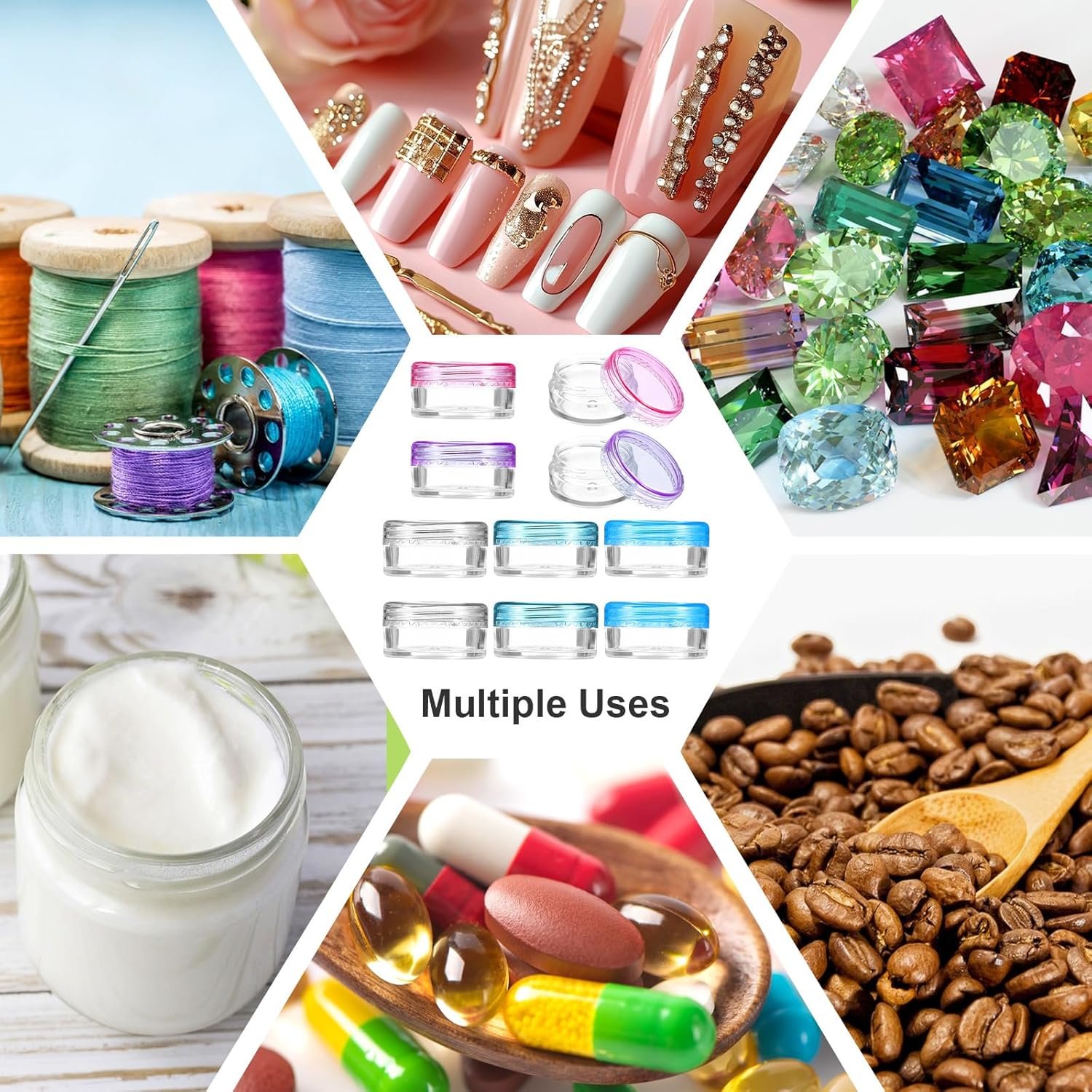 1. The multi-color transparent sample containers use a transparent bottle with a bright-colored lid, which allows you to quickly identify the contents inside. The different colored lids can help you easily classify and organize various items.