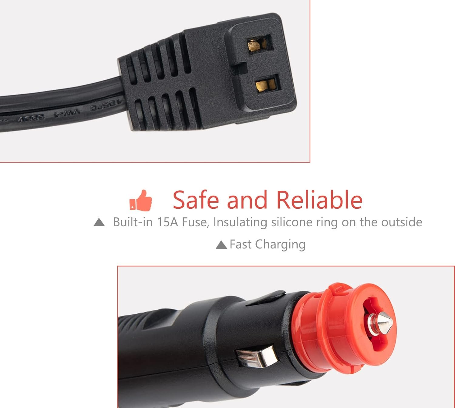 Safe and Reliable: The DC power cord undergo multi-test to ensure safe and keep dangerous away.Built-in 15A fuse, insulating silicone ring on the outside DC power cord cable for 12V/24V portable car refrigerator