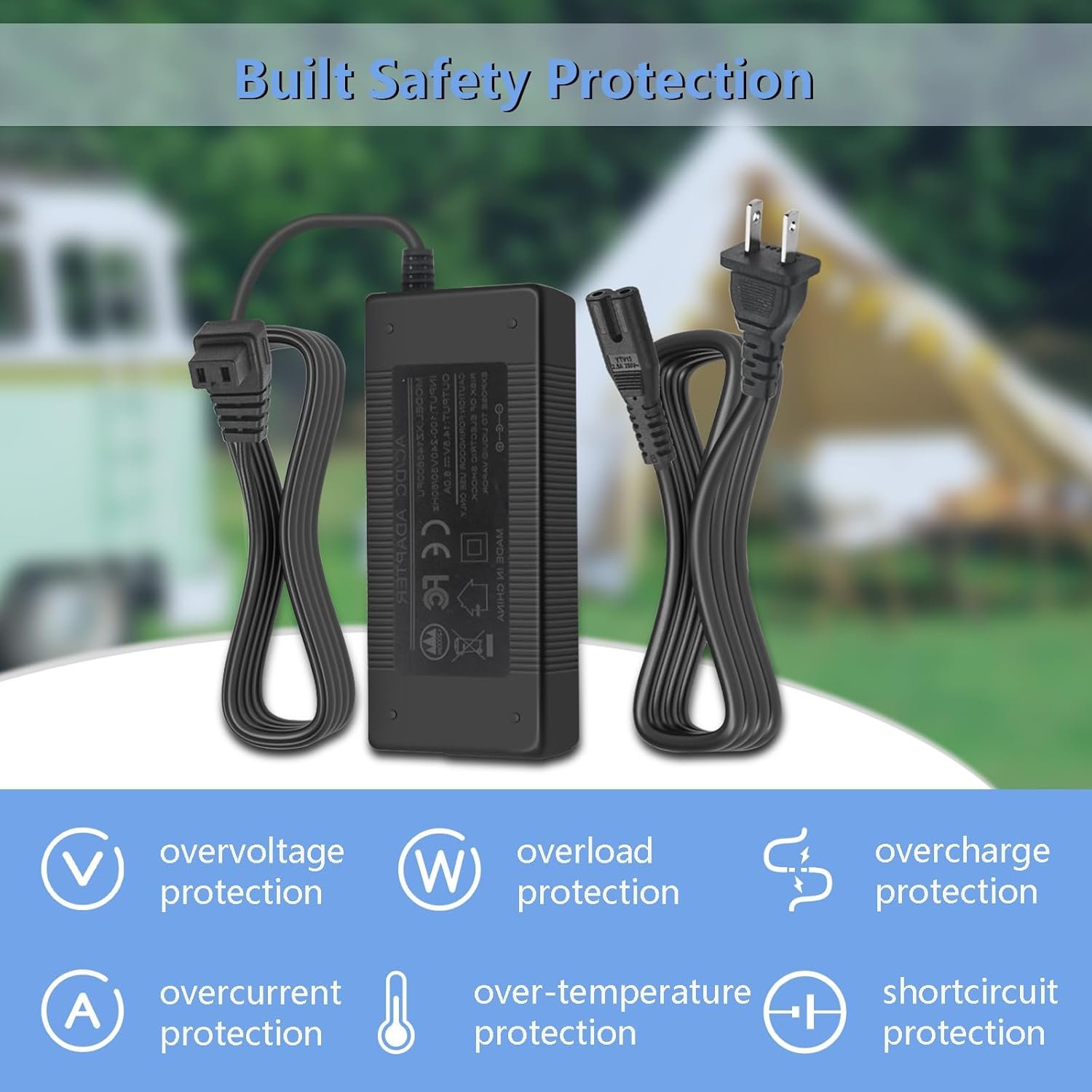 【Multiple Safety Protections】The Refrigerator Adapter Charger Builts in multiple safety protections, such as overload cut-off, over voltage cut-off, over temperature cut-off, short-circuit cut-off.
