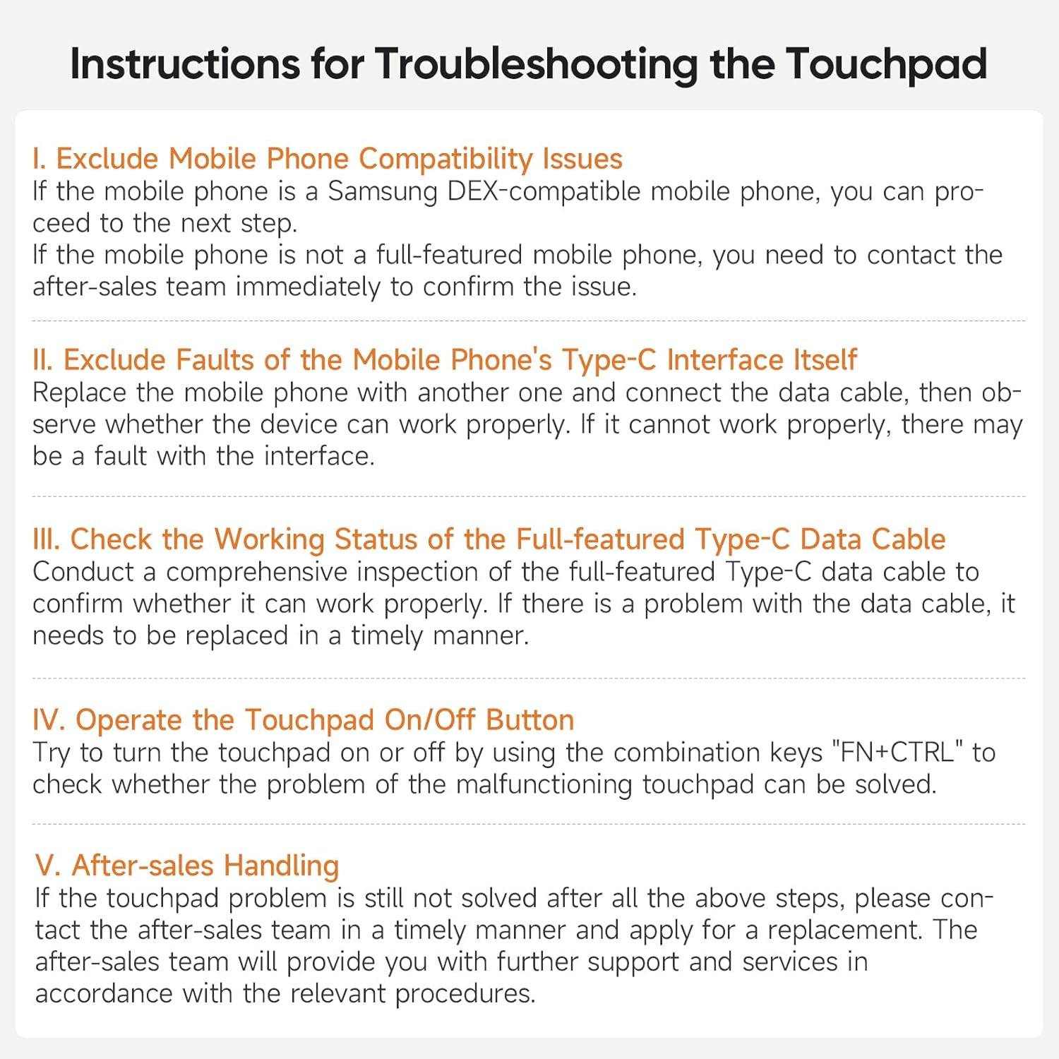 Please ensure your device’s Type-C port supports both power and video output, as some only supply power. If unsure, send us your device model for confirmation. Also, use the provided cable, as some cables only support power, not video.