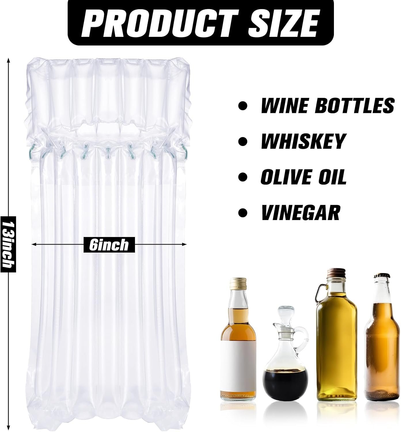 Independent Columns Feature: each wine bottle protectors have 14 independent columns with 7 on each side; The air columns are separately, any column fails will not affect other columns to keep inflated; There is also a foot pump included, you can use this to pump up