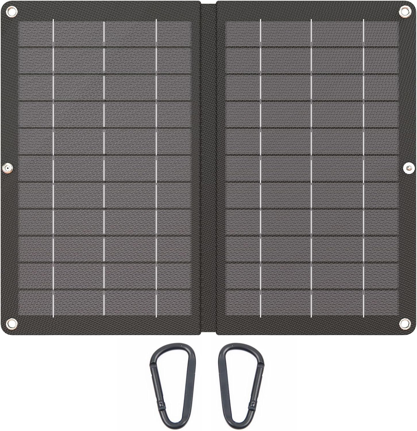 15W Portable Solar Panel, IP65 Waterproof, Foldable Solar Charger with Dual USB Output Compatible with Smartphone, Tablet, Power Bank for Camping