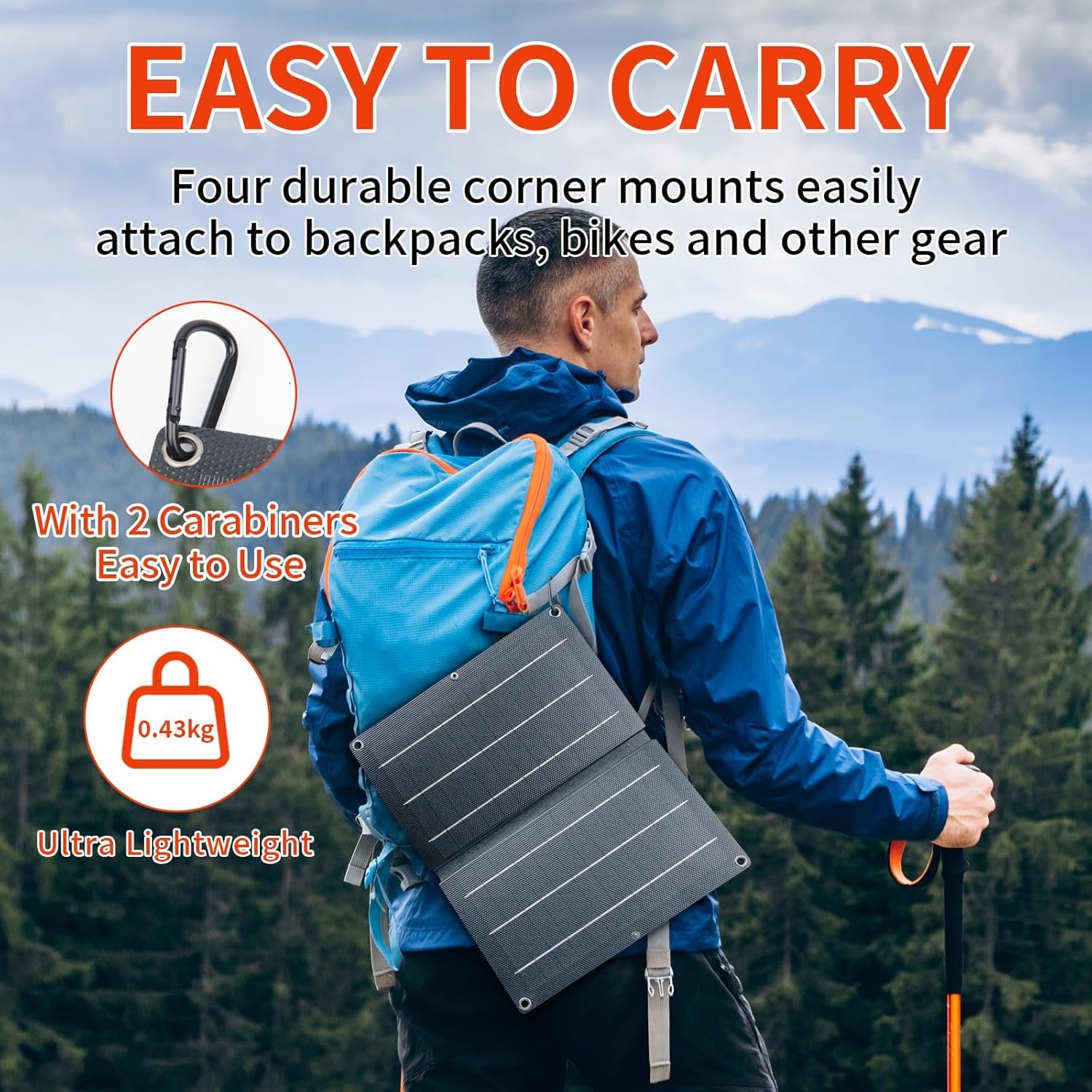 Complete Package, Hassle-Free Maintainence:Your 15W foldable solar charger comes bundled with 2 carabiners for added convenience. We pride ourselves on friendly customer service and stand by our product with a reassuring 2-year maintainence from the date of purchase. Enjoy peace of mind and exceptional support with your solar charging solution