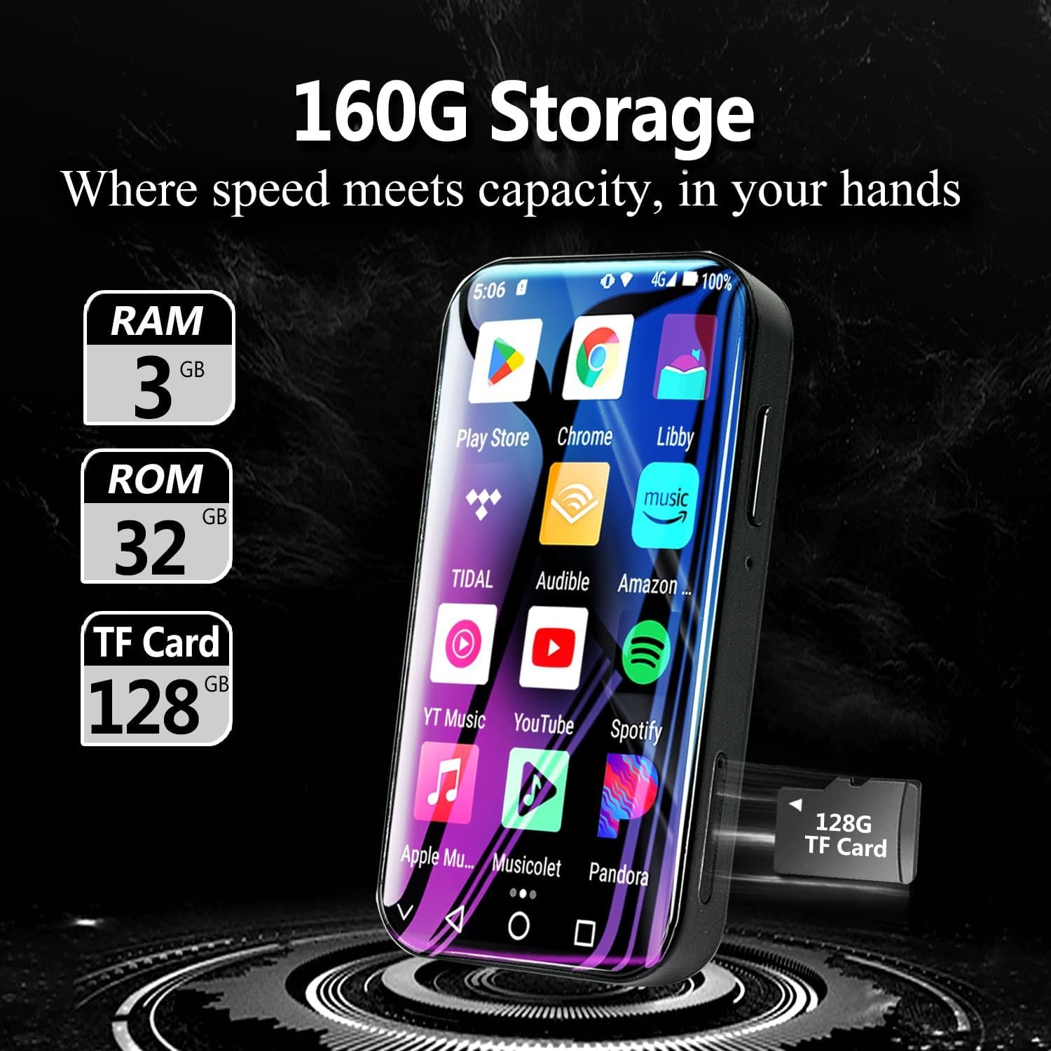 160GB MP3 Player with Bluetooth and WiFi & 4G, MP3 MP4 Player with Amazon Music Spotify, 3.0 Touchscreen Digital HiFi Music Player, Portable Android MP3 Player with YouTube, Google Play, Apps, Camera