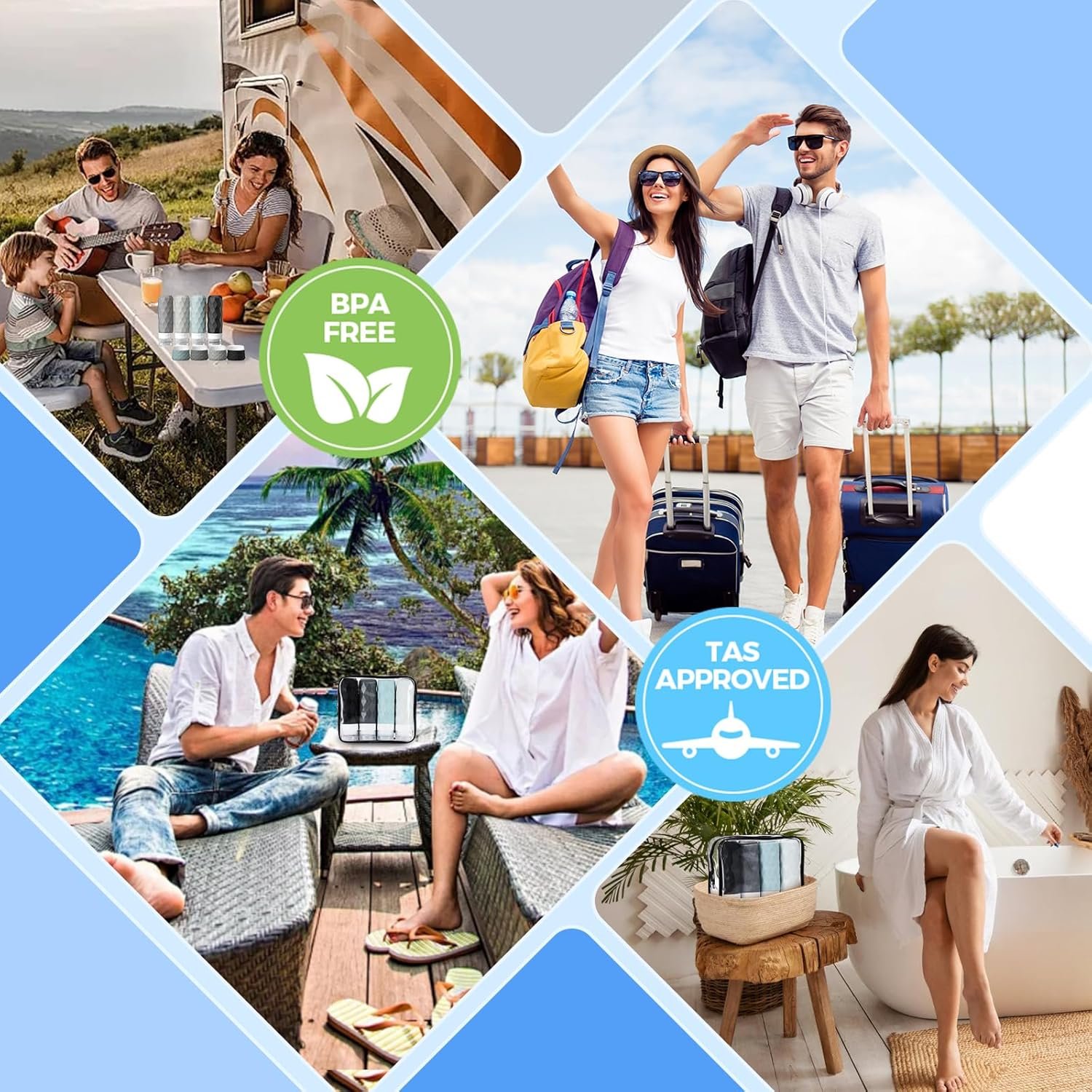 【TSA APPROVED】These 16-pack of toiletry travel bottles meet all TSA carry-on baggage standards, allowing you to pass through security smoothly. There is also a clear and sturdy zipper bag, which is perfect for quick airport inspections