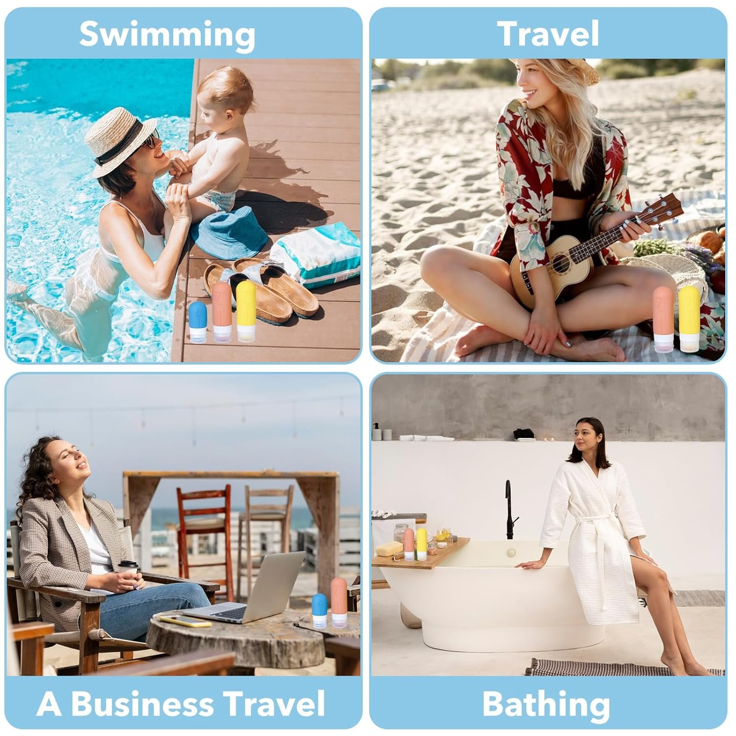 QUALITY MATERIALS: Travel size container is made of high-quality silicone and food-grade materials, does not contain any BPA or harsh materials, TSA certified, safe, durable, odorless, refillable and reusable lotion bottle