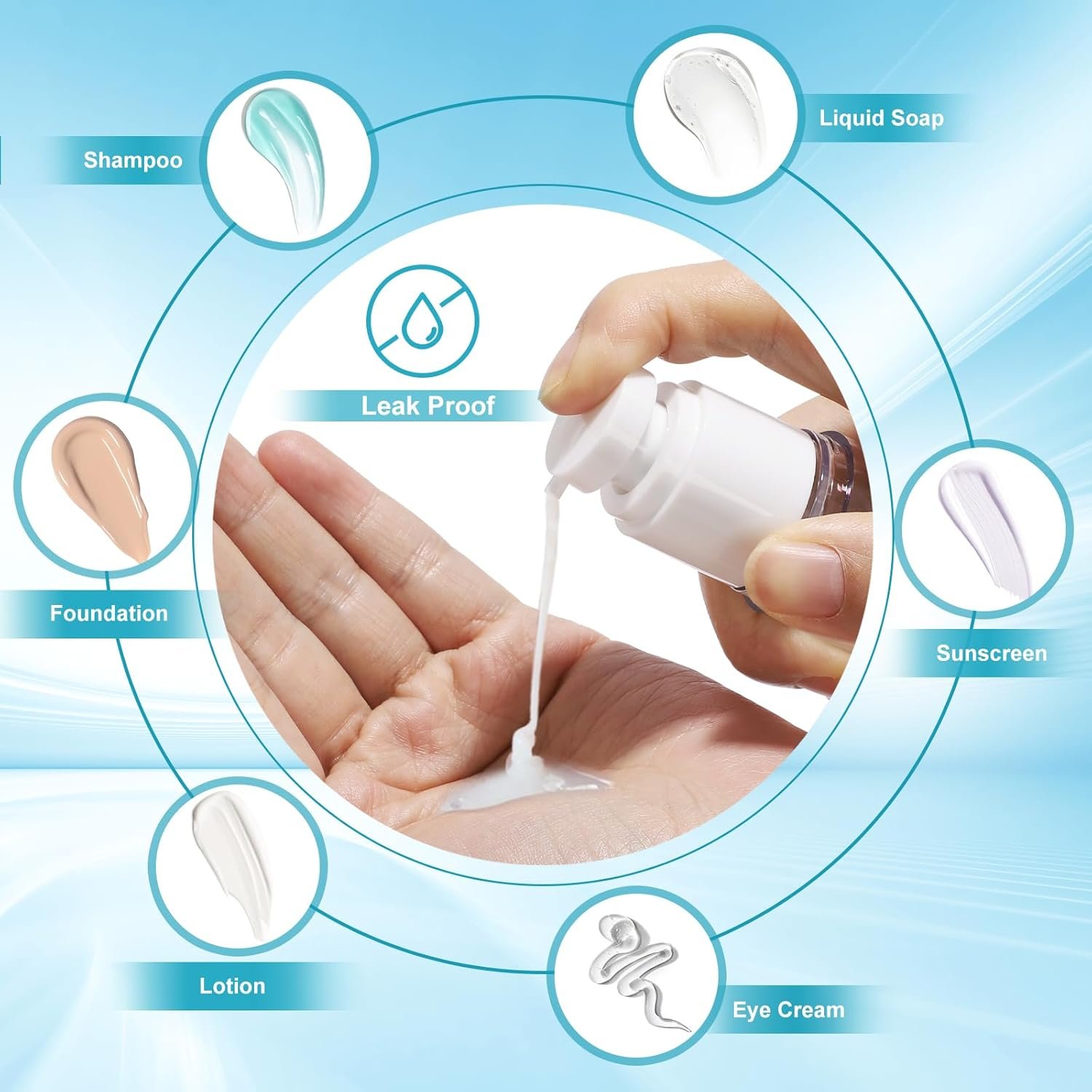 18 Pack Bubimon Airless Pump Jars, 1.7/1/0.7/0.34oz Cosmetic Containers, Leak Proof Refillable jar for Toiletries, Cream Lotion, Eye Cream, Liquid, Foundation, Shampoo (BPA Free)