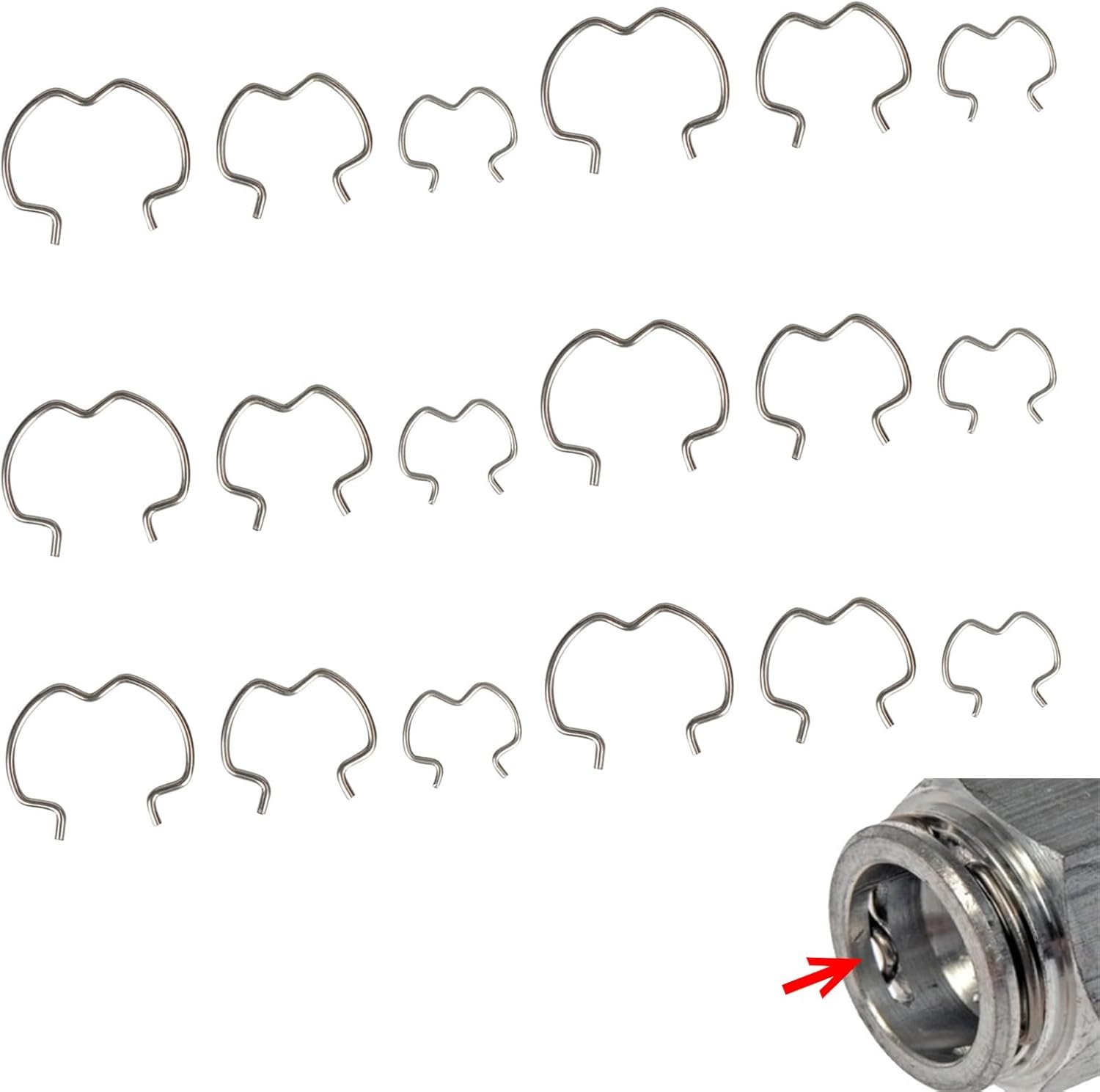 Boxing Details: You will receive eighteen 800-801 quick coupler clips in 3/8 ” 1/2 ” 5/8 ” size. The kit is in sufficient quantity and will meet your daily replacement needs.